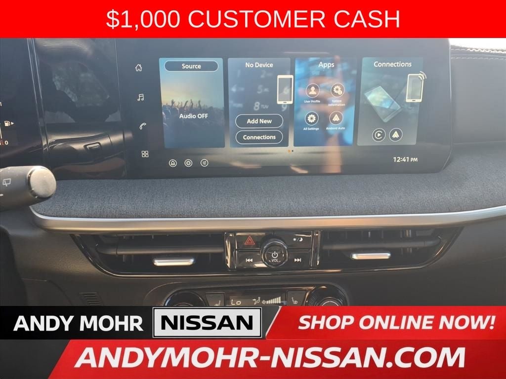 ANDY MOHR NISSAN OF INDIANAPOLIS has provided positive car buying experiences in Indianapolis, Plainfield, Avon, Brownsburg, Greenwood, Danville, Bloomington, Terre Haute, Columbus, Fishers, Carmel, Zionsville, Lebanon and all of Marion county since 1993. You consent to receive autodialed, pre-recorded and artificial voice telemarketing and sales calls, text messages and/or emails from or on behalf of Andy Mohr at the phone number and/or email provided in this application, including cell phone numbers. You understand that this consent is not a condition of purchase of a vehicle or any services from Andy Mohr. Price does not include Tax, Title, License and Dealer Fee; Price does include: $1000 - Nissan Customer Cash. Exp. 03/02/2026